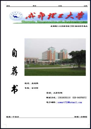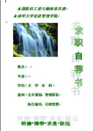 自荐书封面,自荐信封面,求职